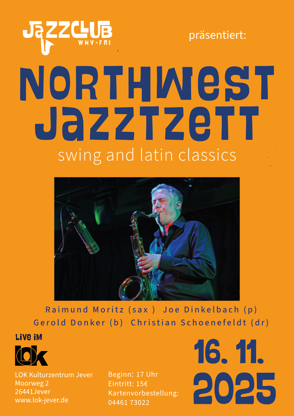 Neben Raimund Moritz am Saxofon werden der Pianist Joe Dinkelbach, der Bassist Gerold Donker