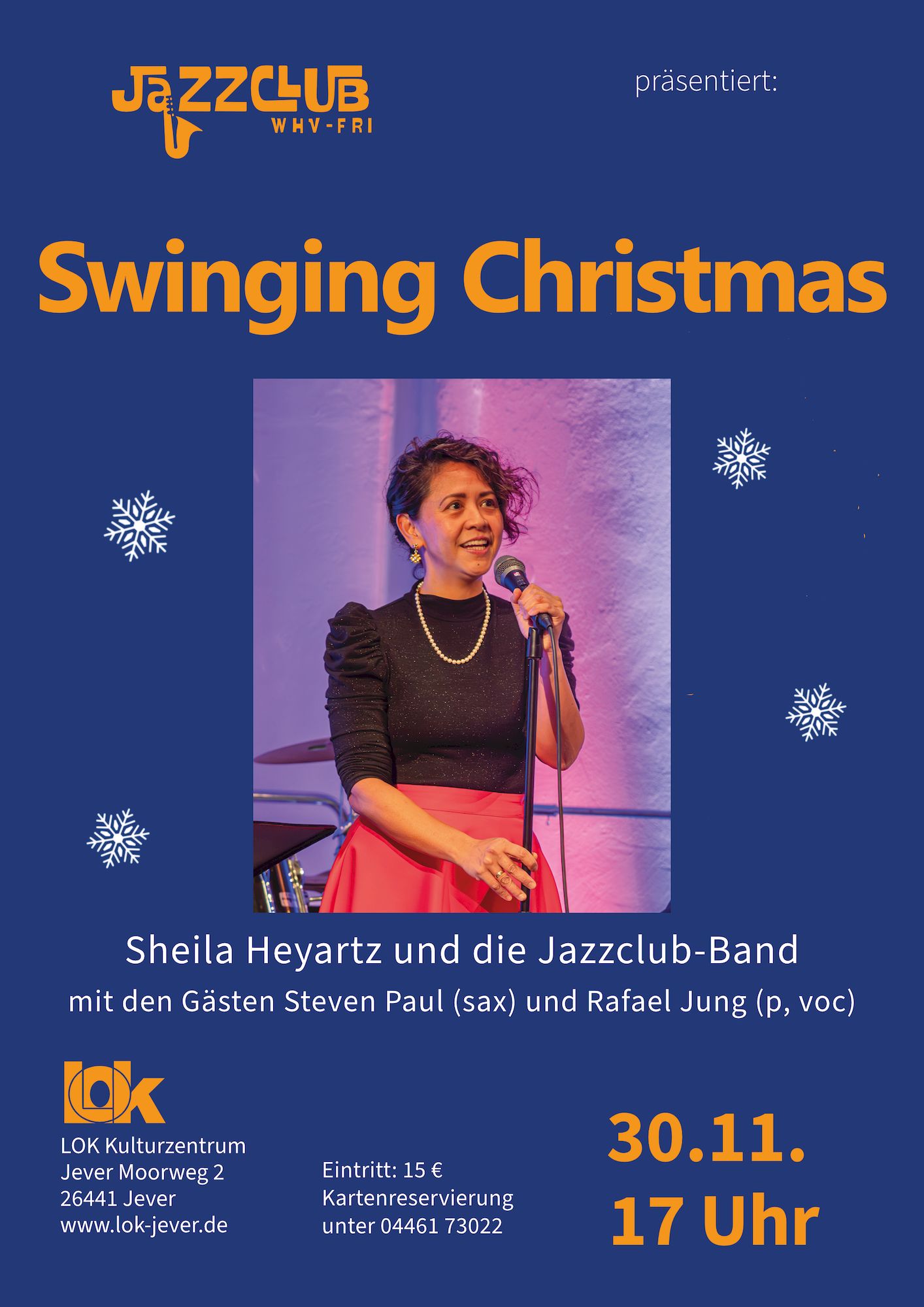 Die Sängerin Sheila Heyartz mit der Jazzclub-Band und weitere Gäste präsentieren die schönsten Songs zur Weihnachtszeit von "Let it snow" und "Winter Wonderland" bis "White Christmas" in einem swingenden und stimmungsvollen Programm.